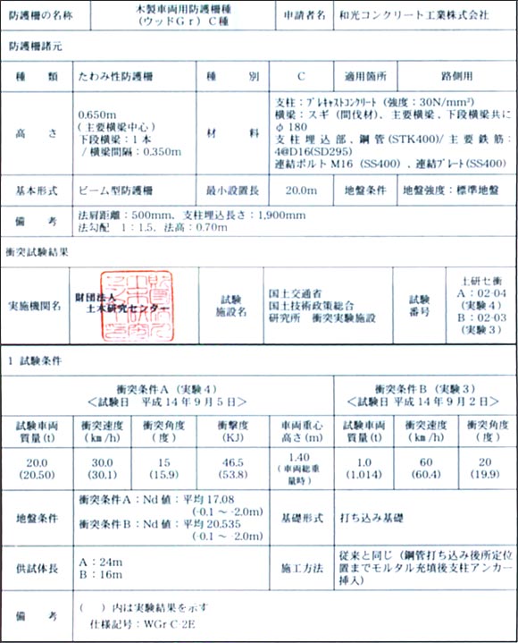 最大進入行程は0mm(車輪外側最大進入量よりタイヤ巾が大きいため)で、かつ防護柵の最大変位量も161.52mmあり、ともに性能規定値以内である。 |